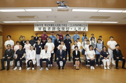 令和6年4月1日(月)特定医療法人社団千寿会とことぶき商事株式会社の入社式を行いました。今年度は医師や看護師、理学療法士をはじめ、介護員として入職したベトナム人特定技能(介護)就職者5名を含む31名の新入職員を迎えました。