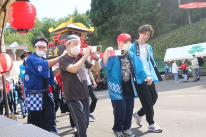 千葉泰二院長の開会あいさつ後、法人職員で構成する「雅太鼓」の力強い演奏を合図に千壽まつりが開幕。さらに今回は設立60周年を記念して患者様とともにお神輿を作り、担いで会場内を練り歩きました。