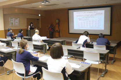 患者様の医療、看護、生活状況の質向上に役立てることを目的に、 日々の取り組みや看護研究などを共有しております。今回は当院と関連施設から合わせて6人の職員が登壇しました。