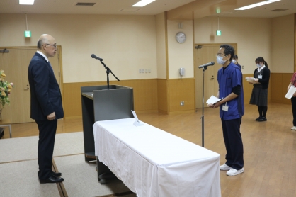 受賞者を代表してリハビリテーション科 滝田邦俊係長は多くの方に支えられたと感謝を示し「今後も病院のさらなる発展に寄与できるよう努力する」と述べました。