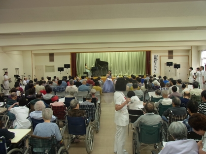 入院患者様やデイケアのメンバー様を中心に、120名を超える方々にご観覧いただきました。今回のピアニストには石井ルカさん、ソプラニストには成田恵さんをお招きして、全部で17曲を演奏して頂きました。