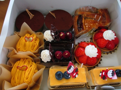 当日は、それぞれのメンバーさんらが役割を持ち、数名のグループに分かれ買い出しに行き、フライドチキン・ピザ・ポテト・ケーキ等を購入しました。和気あいあいとした雰囲気の中「皆で食べると美味しいね」などの会話が聞かれ、多くの笑顔が見られました。