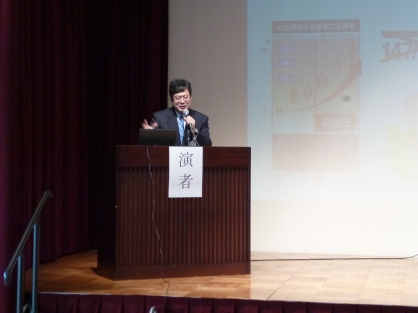 1月15日(木曜日)、当法人主催、登別市後援で『第5回市民公開講座』を開催し、登別市をはじめ室蘭市から約50名もの市民の方々に参加いただきました。当院の福澤純内科診療部長(循環器内科)が「“高血圧”と言われたあなたへ」と題しまして、<高血圧とは><高血圧の症状><高血圧の合併症><高血圧とライフスタイル><高血圧の治療>の内容で講演を行ないました。