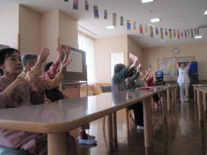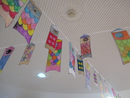 5月1日に西2階病棟で『こいのぼりレクリエーション』を行いました。西2階のほとんどの患者様に参加していただき、体操や春にちなんだ童謡を歌い、職員の出し物も行ったりと笑い声も聞こえる中、和やかな雰囲気で行うことができました。
