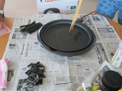 らんでは、毎週金曜日の14時からは茶話会を開催しています。7月24日(金)は茶話会が始まる前に、先日ハッピーワーク室蘭さんから頂いた地場産の昆布を使って、素揚げをしてみました。