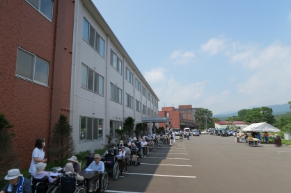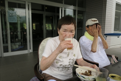 平成27年8月6日(木曜日)介護老人保健施設グリーンコート三愛にて、ジンギスカン祭りを開催致しました。あまりにも天気が良すぎて、急遽日陰へテーブルを移動しての開催となりましたが、夏空の下、屋外でジンギスカンを食べ、ビールを飲み利用者様と職員で楽しい時間を過ごすことができました!