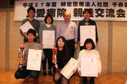 平成27年11月14日(土)、職員親睦会主催の「秋のボウリング親睦交流会」を開催しました。理事長先生をはじめ、病院からは医師、看護師、コ・メディカルや事務部、併設施設やことぶき商事からも多くの職員が参加しました。