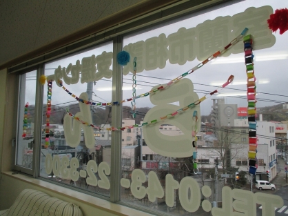 外からでも目立つ飾り付けとなって、クリスマス会が待ち遠しいです!