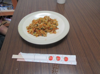 野菜のみじん切りの練習の為、炒飯を作りました。細かい作業だったので、大変でしたが、パラパラで美味しい炒飯を作ることができました。