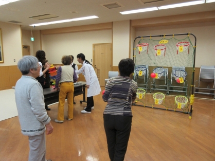 今回は全員で16名の方々に参加していただき、福寿草の会としては1回目の開催でした。内容としましては、①臨床心理士 川村幸大氏による「自律訓練法」のお話と体験、②介護者家族の交流、さらに今回は少しでも楽しんでもらうことを目的にジャンボぐらぐらゲーム(指先を使うパーティゲーム)、ポケネット(腕の運動になるボール投げゲーム)を用意しました。