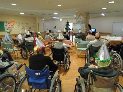 41名の患者様に参加していただき、職員とカラオケやゲームを楽しみました。クリスマスカラーのデザートを味わい、患者様の笑顔や笑い声がたくさんのクリスマス会でした。