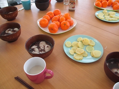 いつも通り14時から茶話会を行い、皆で作ったおしるこ・甘酒を飲みながら2015年を振り返りました。そして、2016年はどのような年にしたいか、一人ずつ抱負や目標を発表しました。