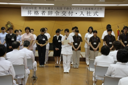 本日、特定医療法人社団 千寿会、ことぶき商事株式会社の入社式を行いました。