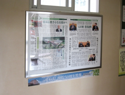 平成28年3月26日(土)の室蘭民報朝刊に掲載された開院50周年の特集記事の大型パネルが、室蘭民報社中部支社の五十嵐支社長より寄贈されました。