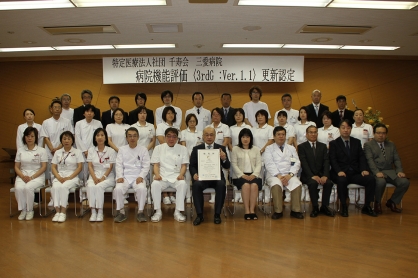 平成28年4月1日付で日本医療機能評価機構から機能種別版評価項目3rdG:Ver.1.1の認定更新(2回目)を受けました。今後も医療・保健・福祉の変化に合わせて対応し、地域のニーズに合った信頼される病院づくりを目指して職員一同努力して参ります。