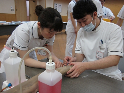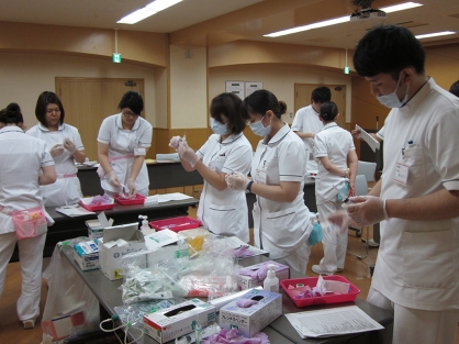 平成28年6月1日(水)に看護部の新人技術研修を実施しました。この研修は注射業務全般においてエラーやリスクを無くし、的確な看護実践を患者さん提供するために実施しています。