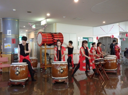 平成28年7月30日(土曜日)にグリーンコート三愛で夏祭りを開催しました。千葉泰二施設長の挨拶に続き、オープニングでは三愛病院雅太鼓の皆様が迫力ある演奏を披露してくれました。
