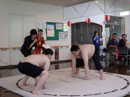 夏祭りの中盤では、職員が体を張った余興で会場を盛り上げ、