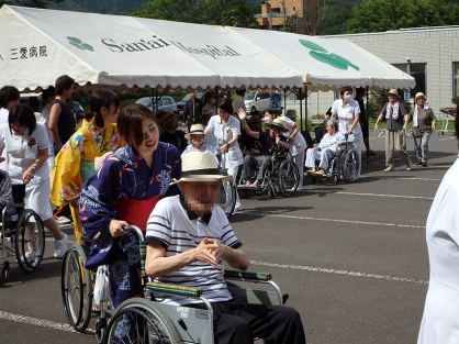 職員も白衣から色とりどりの鮮やかな浴衣に着替えて参加し、普段見慣れない姿に患者さんは笑顔を浮かべて話しかけていました。
