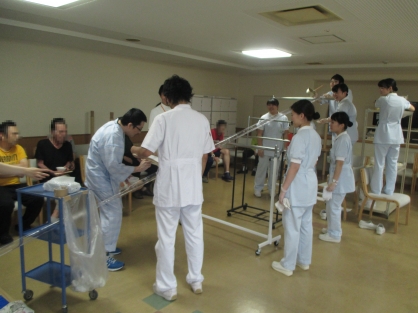 平成28年8月26日(金)に南3階病棟で流しそうめんを堪能しました。患者さん自身が薬味や調味料で好みのめんつゆを作り、流れてくるそうめんを箸でつかんで、おいしそうに食べていました。普段体験できないことが楽しみに繋がったようで、皆さんで季節感を味わいました。