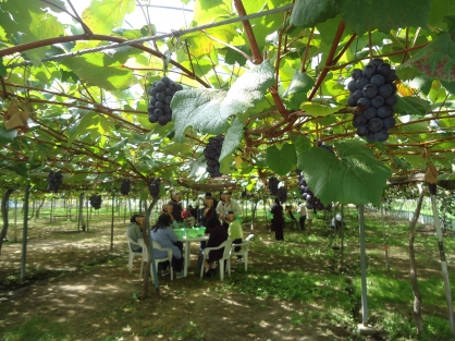 到着後は各々、りんご、ぶどう、なし、プルーン等、好きな果実を心行くまで狩って食べました。