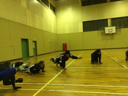 三愛病院野球部は1月10日より、旧登別大谷高校の体育館で全体練習を開始し、平成29年のシーズンをスタートさせました。週3回、午後6時30分から2時間程度の練習を3月まで続け、基本練習を中心に基礎体力づくりのトレーニングを行っていきます。