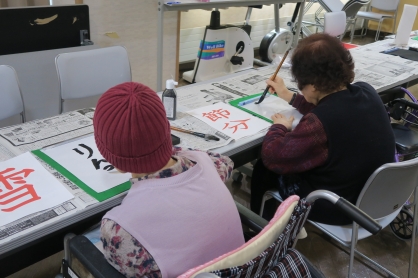 新年を迎え、グリーンコート三愛では平成29年1月13日(金)に新年会を開催しました。羽根つきや書道のほか、おみくじ、麻雀、福笑い、かるた、百人一首等たくさんのブースを用意し、利用者さんと一緒に職員も参加して大変盛り上がりました。このほか喫茶コーナーも設け、お茶とお菓子を食べながらくつろいでいる方もいました。
