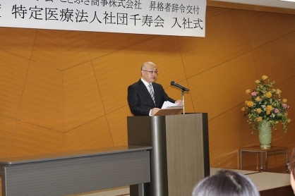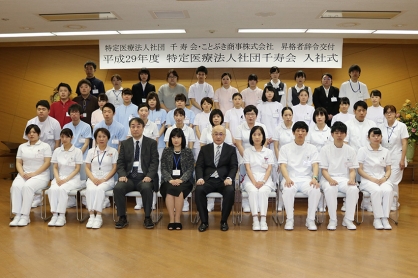 平成29年4月3日(月)に特定医療法人社団千寿会とことぶき商事株式会社の入社式を行いました。今年度は医師や看護師をはじめ、理学療法士やケアワーカーなど38名の新入職員を迎えました。
