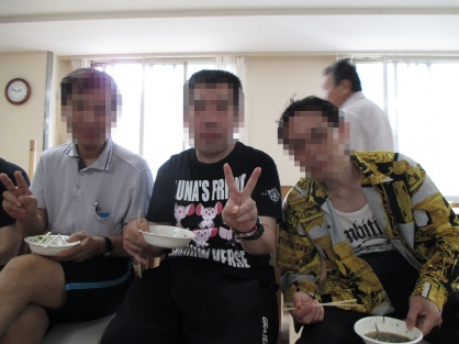 流れてくるそうめんを自身で取って、好みの薬味や調味料でアクセントをつけ、さまざまな味でそうめんに舌鼓を打っていました。普段の食事とは違ったことが楽しみに繋がったようで、笑顔が多く見られました。