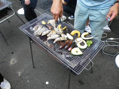 今年も畑作業で収穫した野菜をはじめ、肉や海鮮など様々な食材をバーベキューコンロで焼き、皆様で楽しみました。