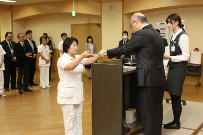 永年勤続表彰は法人で働く職員の励みになり、自分を振り返る良い機会にもなります。 受賞を機に今後も法人の発展に貢献することが、安全で安心な医療・保健・福祉のトータルケアに繋がると考えております。