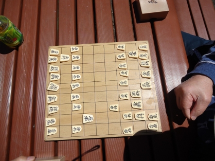 青空の下で将棋を行う方もおり、