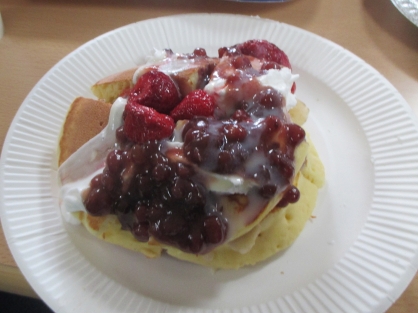 平成30年12月21日(金)に南館3階病棟で『クリスマス会』を開催しました。会食では唐揚げやピザ、ホットケーキなどを用意し、「おいしいね」「おかわりあるの?」などと、にこやかに食事をとっていました。