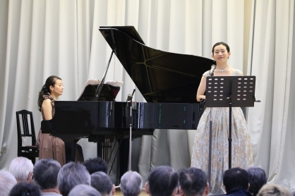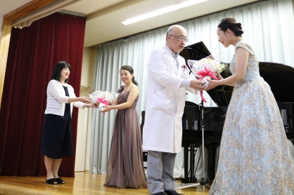 6月13日(木)に第7回三愛病院ハートフルコンサートを開催致しました。今年は、ピアニストの岡部綾乃さん、声楽家の坂東由依さんにお越し頂き、全13曲を演奏して頂きました。