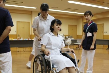 血圧測定や、車いす体験、採血の体験、病棟でのレクリエーション体験等を行いました。