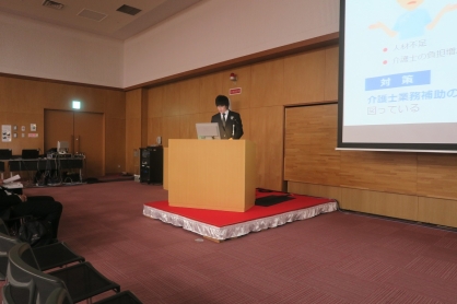 グリーンコート三愛から岡崎直人介護福祉士が「介護助手は老健の力となるのか~介護士の負担軽減と利用者の活動時間増加を検証~」と題して発表し、活発な質問や意見を頂く事ができました。